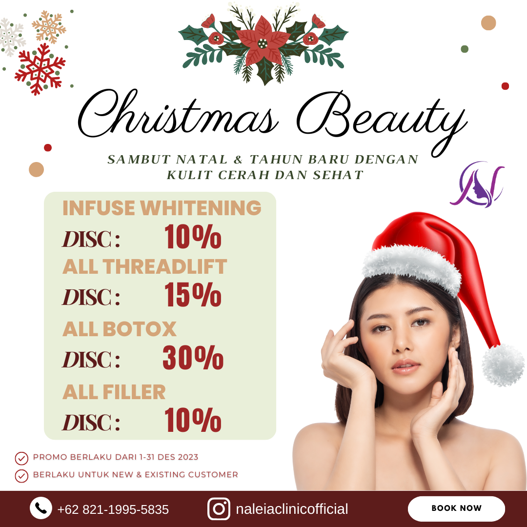 Anda bisa melihat penawaran lengkap mengenai promo akhir tahun ini. Naleia Clinic adalah klinik kecantikan di Bandung yang berorientasi terhadap hasil. Setiap tindakan dipastikan menjadi bagian-bagian yang menyeluruh untuk memperoleh hasil yang maksimal. Kita tahu bahwa untuk mendapatkan hasil yang ideal diperlukan beberapa tahapan. Karena kulit pun perlu melakukan transformasi secara aman dengan tetap membuat Anda nyaman.